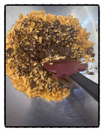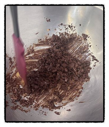 녹인 초콜릿에 식감을 더 해줄 포요팅을 섞어 줍니다